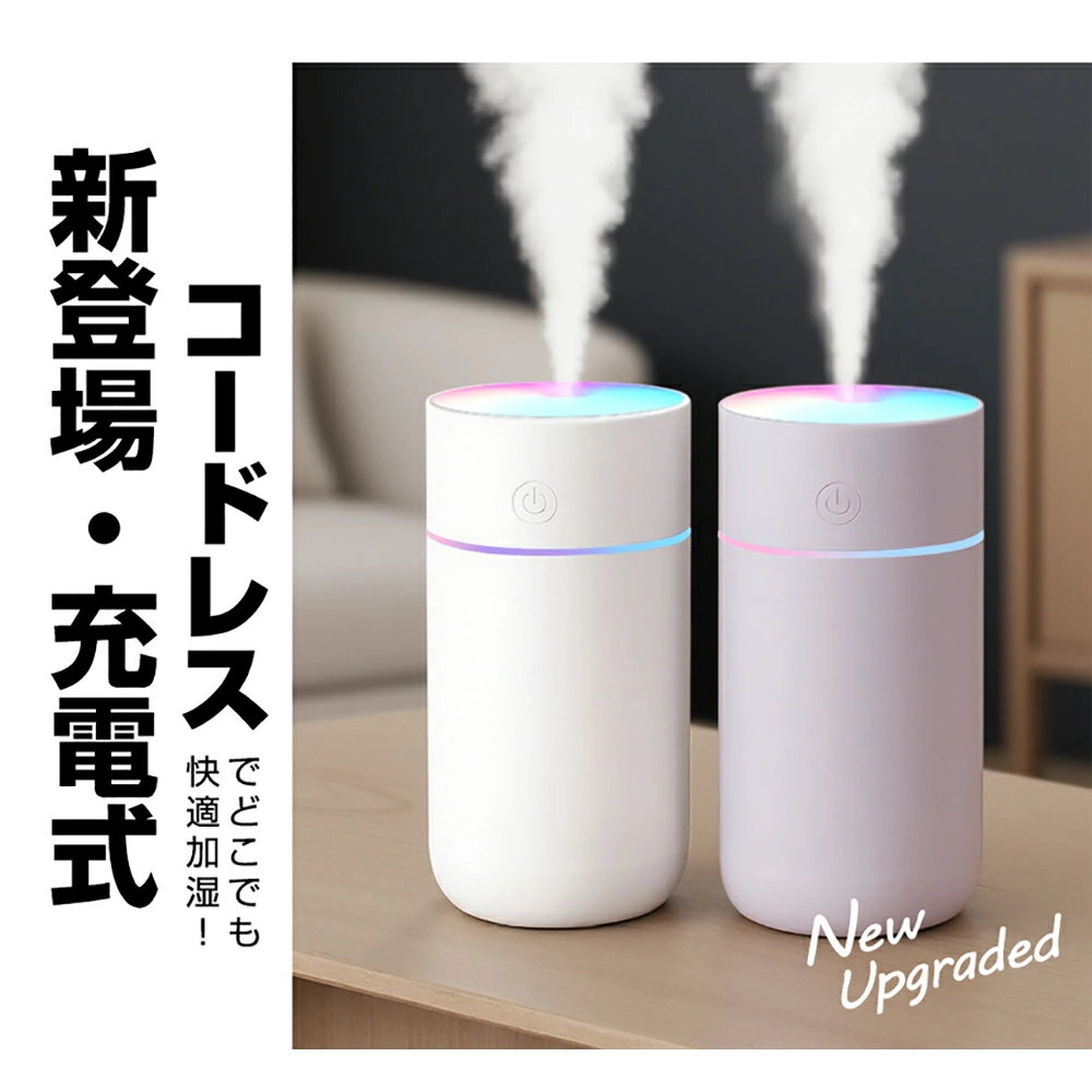 ポータブル加湿器は、バッグに入れて持っていける携帯加湿器で、帰省先やホテルでも使えます。USB充電式なのでモバイルバッテリーでも稼働できます。