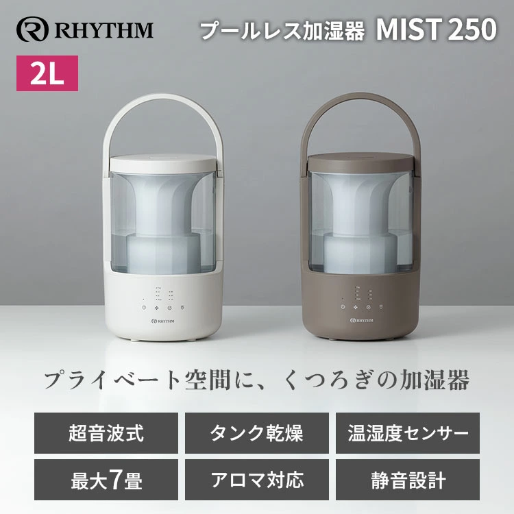 ![]() | RHYTHM リズム プールレス加湿器 MIST250 9YYA64RH08 超音波式 2L 7畳対応 ハンドル付き おしゃれ 加湿器 小型 温湿度センサー タンク乾燥機能 大容量 自動運転 タイマー 乾燥 アロマ対応 照明 ライト インテリア リビング 寝室 清潔 静音 お手入れ簡単 【ポイント10倍】価格:15800円 (2025/12/22 23:53時点) 感想(1件) |